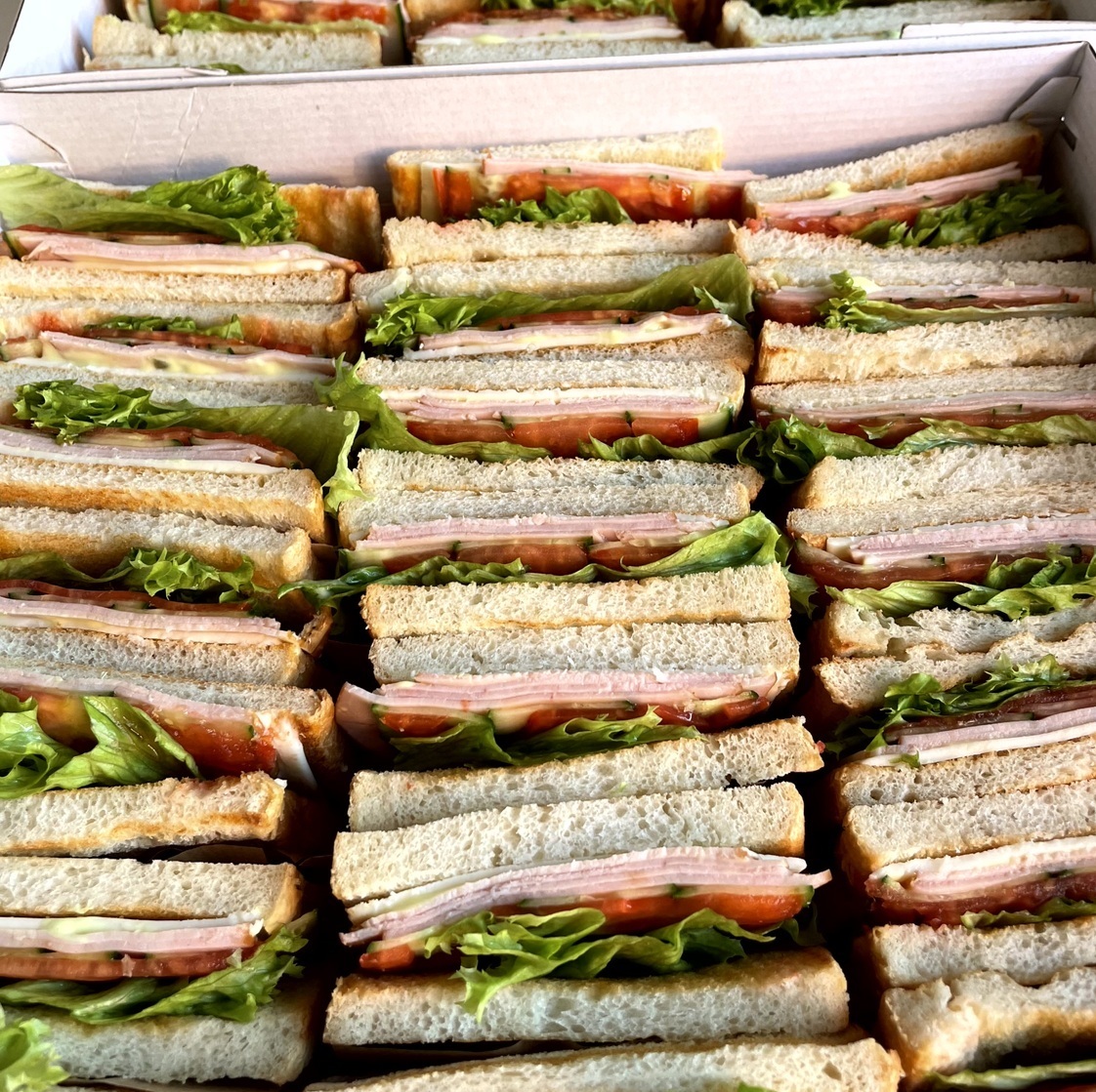 Сэндвичи с ветчиной и сыром - 10 шт. • Сэндвичи с лососем - 10 шт.